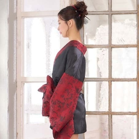 ジャーガード素材の高級感が有る、配色着物ドレス。