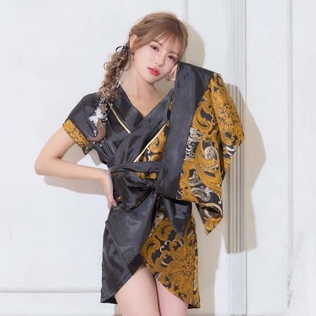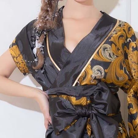 アシメトリーデザインのスタイリッシュな着物ドレス。