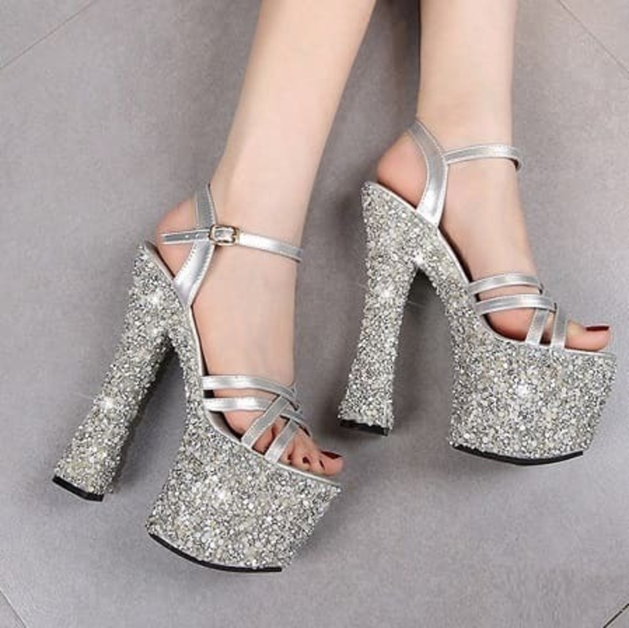 【Jewel ジュエル 17cmヒール グリッターラメ サンダル】