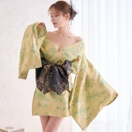 オフショルダーデザインがキュートでセクシーな着物ドレス。