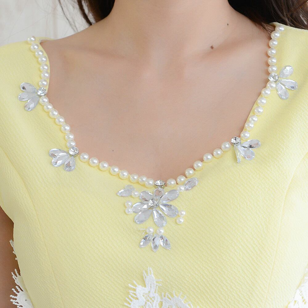 【 Jewel ジュエル パールビジュ付部分レース 2ピースドレス 】