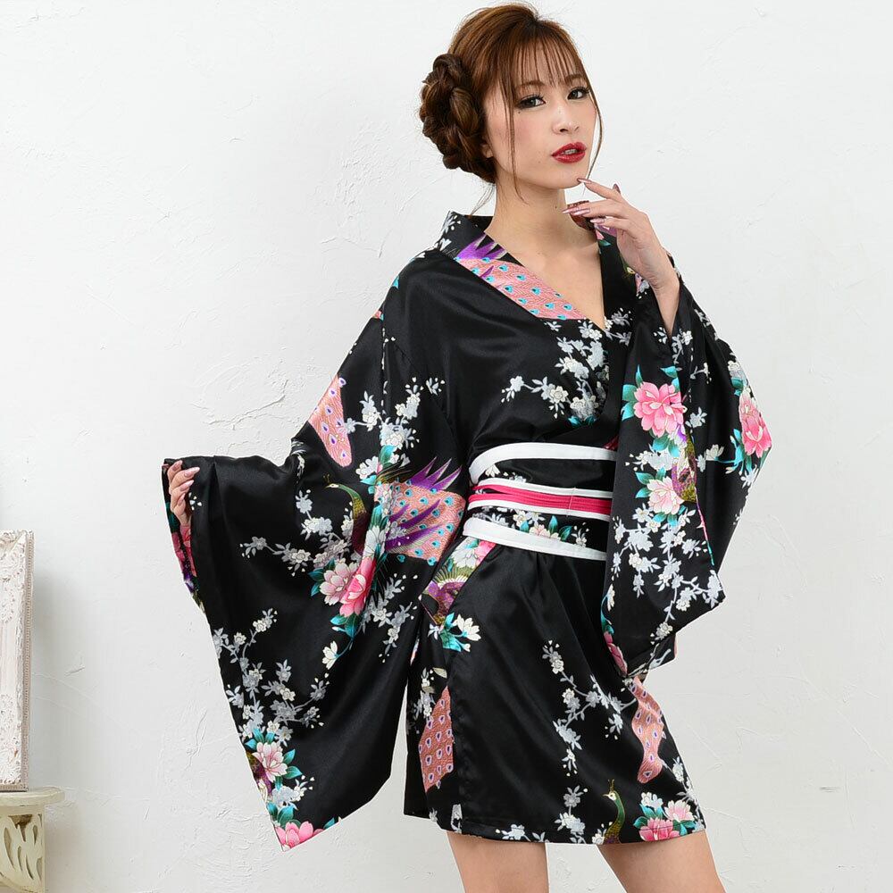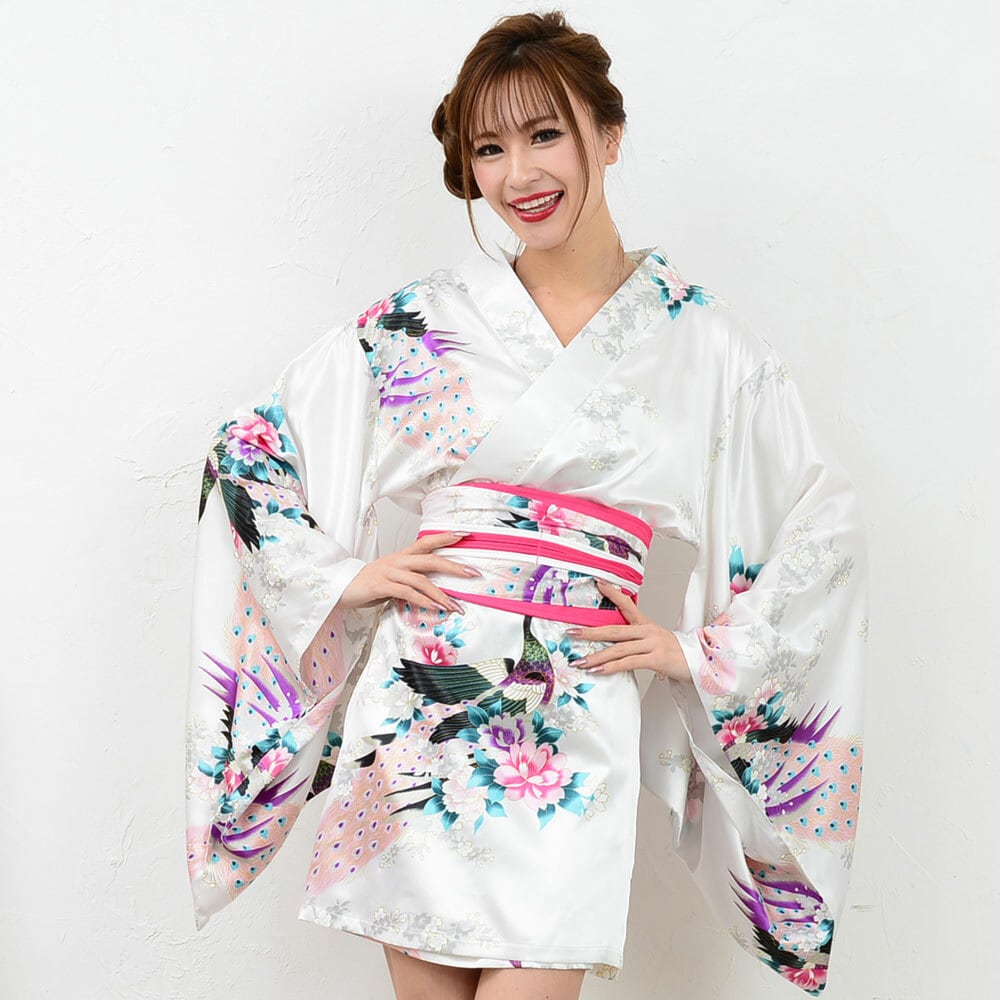 和柄の孔雀柄の定番タイプのミニ浴衣ドレスです。
