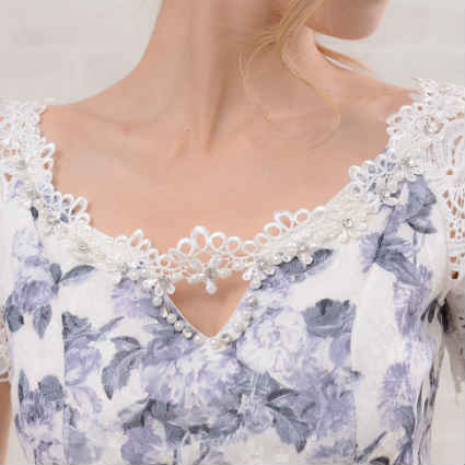 全体にプリントされた花柄が優雅さを表現したドレスです。