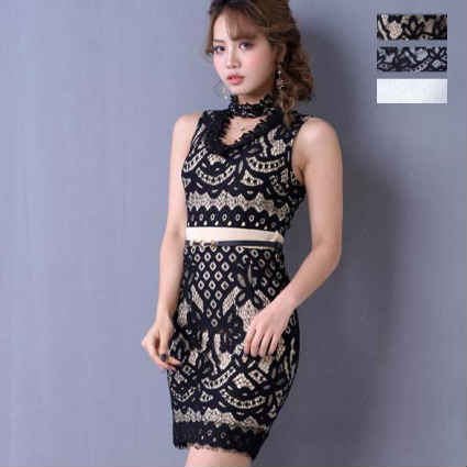 【Jewel ジュエル ベルト付 総レース ミニドレス】