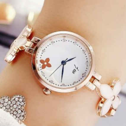 フラワーモチーフが手元で煌めき、フェミニンでレディ感漂う腕時計