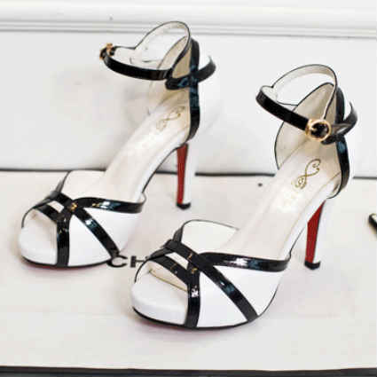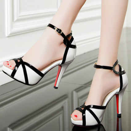 ホワイト地にブラックのライン映えるキャバサンダル。