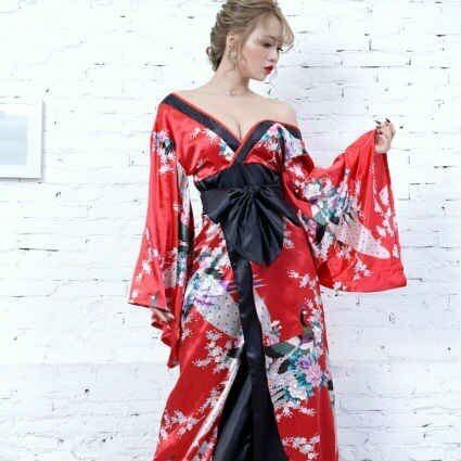 こちらの花魁ドレスは「着物タイプ」ではなく、ファスナーが付いた「ドレスタイプ」なので、帯を締める手間が要りません