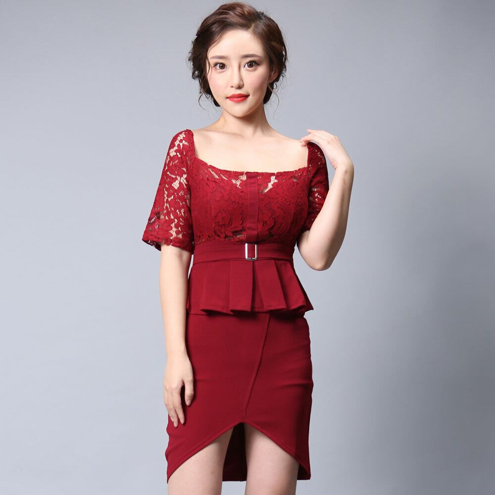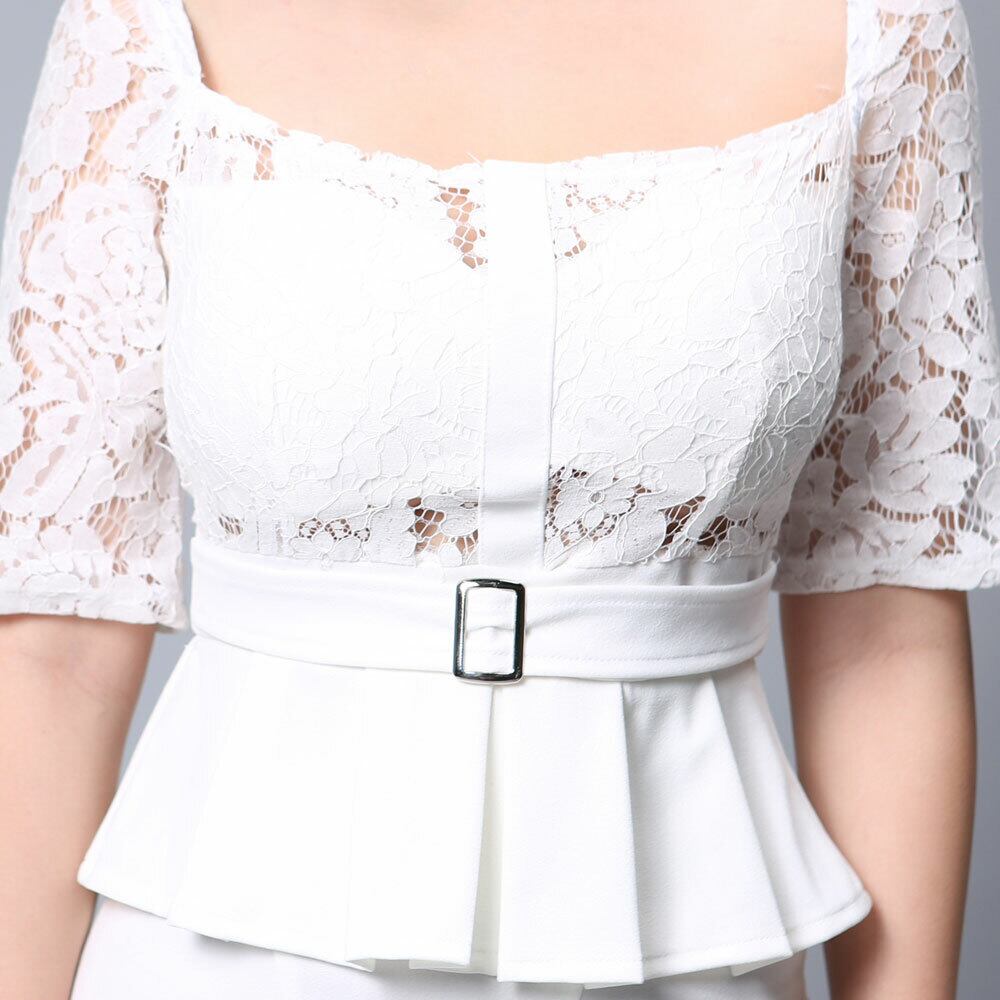魅せレースがエレガントなムードを漂わせ、ぺプラムが上品さも醸し出したドレスです。