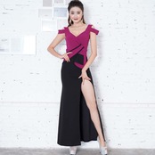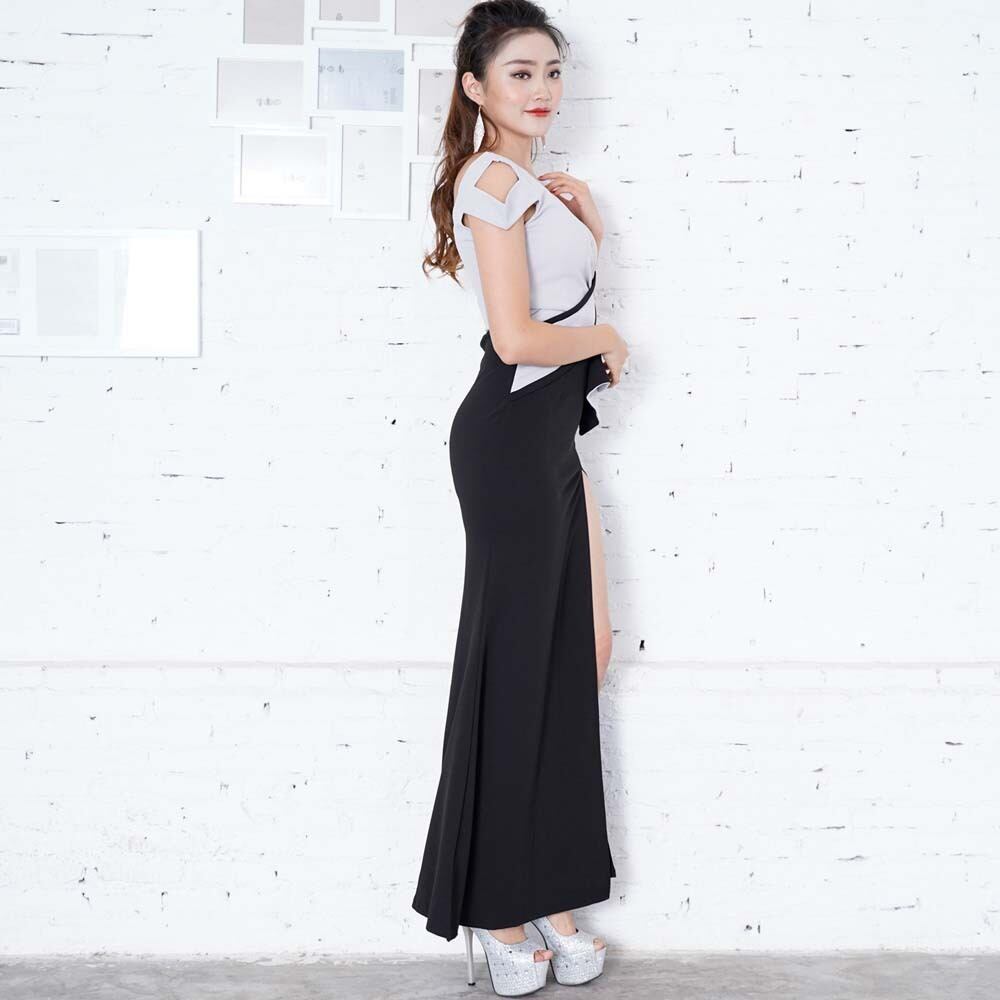 深く入ったスリットがセクシーさを表現し、バイカラーがスタイリッシュさも演出したロングドレス。