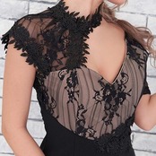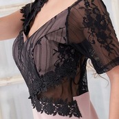 レース素材と無地素材が調和されエレガントなムードを漂わせたドレスです。