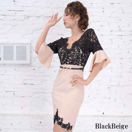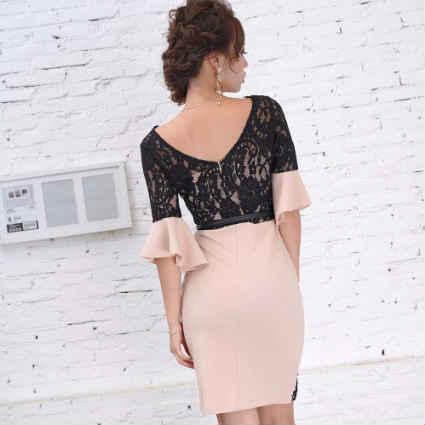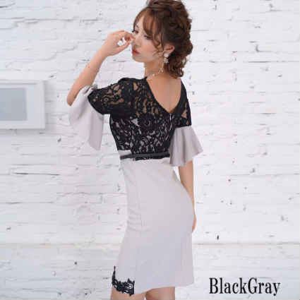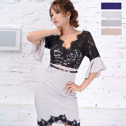 キャバドレス ミニ キャバ ドレス キャバクラ 大人 キャバクラドレス Jewel ジュエル フレアスリーブ レース ミニドレス 450341191