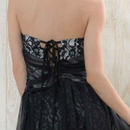 レースのミニドレスにシフォンのベールをまとったような優雅なデザインのミニインドレス。