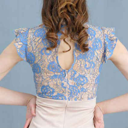 レース素材と無地素材が調和されエレガントなムードを漂わせたドレスです。