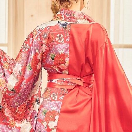 【アシメトリー 花柄 ゴールドパイピング 花鳥柄 花魁ドレス】