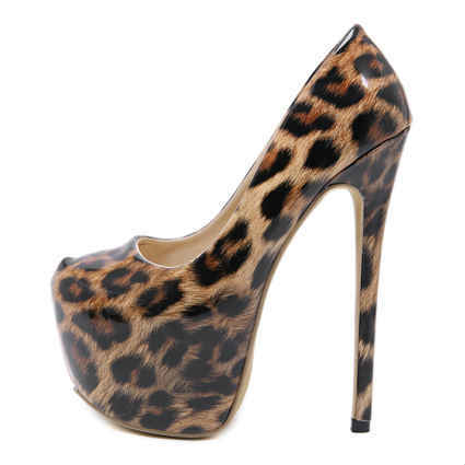 光沢感の有るエナメルに描かれたヒョウ柄がセクシーさとエレガントさを演出したキャバパンプスです。