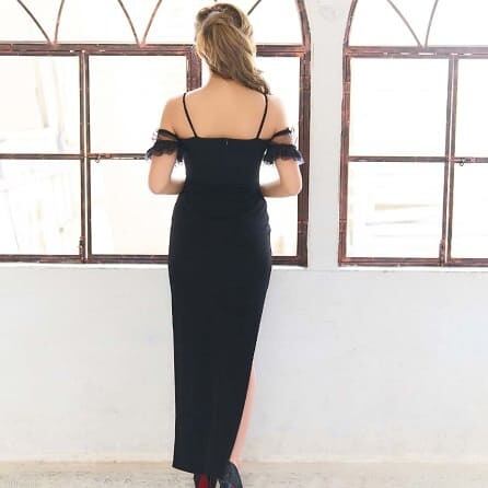 脚魅せのセクシーでエレガントな大人のロングドレスです。