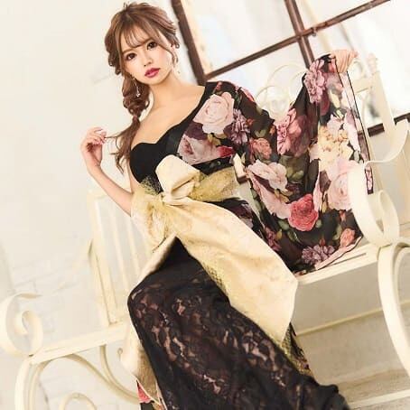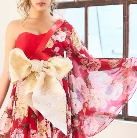 【ドレスショップJewel 花柄 レース シフォン 着物ドレス】