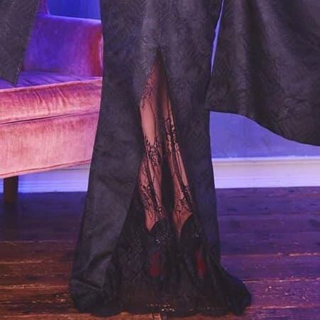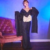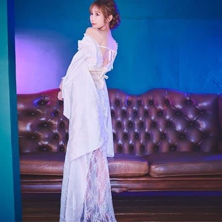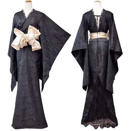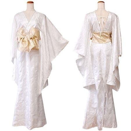 オフショルダーがエレガントなマーメードシルエットの着物ドレス。